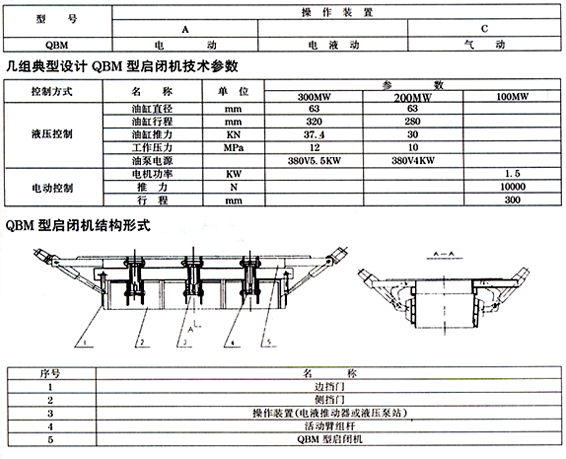QBM型啟閉機安置在鍋爐渣井下部,在撈渣機正常工作時,作爐底密封。在撈渣機旁出現(xiàn)保障,需檢修時,關閉此門,作臨時儲渣及爐堂密封。 QBM型啟閉機由若干個部分組成。其安裝尺寸根據(jù)工況需求確定,關斷門與渣井之間采用螺栓連接,下部直接插入撈渣機水槽中。 QBM型啟閉機的操作控制有電液動、電動、氣動方式。選用何種方式,定貨時請注明。